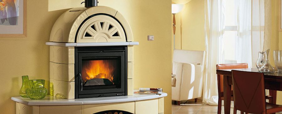 Ιδιαίτερη, ενεργειακή αερόθερμη σόμπα ξύλου από την σειρά Stufe - Camino της La Nordica - Extraflame. Με ολόσωμη επένδυση από αυθεντικά χειροποίητα κεραμικά. Με φούρνο - συρτάρι στο πάνω μέρος της και ξυλαποθήκη στη βάση. Κεραμικό πυρίμαχο τζάμι 750°C. Σε έξι διαφορετικές εκδόσεις, με ή χωρίς πάγκο