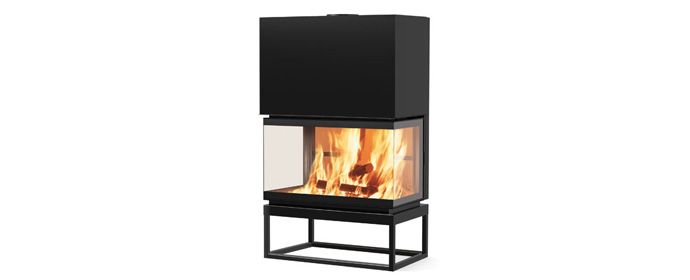 Ενεργειακό αερόθερμο τζάκι ξύλου τριών πλευρών με τζάμι σε τρια τεμάχια, πυρίμαχο εσωτερικό, αυτοκλειόμενη πόρτα και κυκλοφορία θερμού αέρα με φυσικό ελκυσμό.
