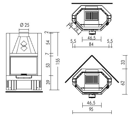 Εστία με το πρισματικό κεραμικό τζάμι, προσφέρει εξαιρετική θέα της φωτιάς, τοποθετείται σε γωνία ή ως κεντρική.