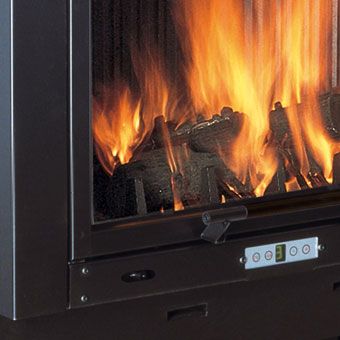 Κλειστή εστία από σκούρο γκρίζο ατσάλι .